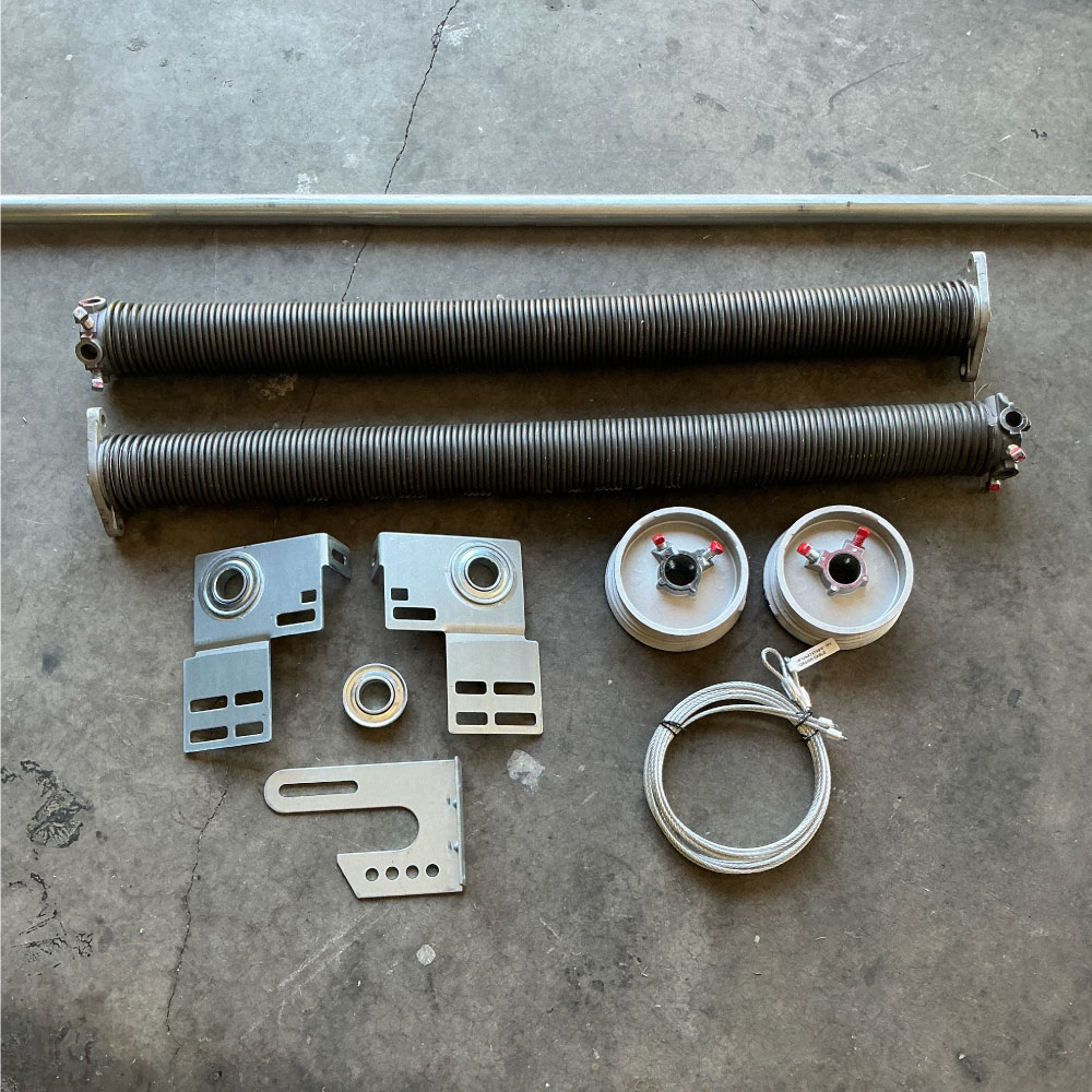 2 springs, torsion tube, center bearing, center bearing plate, 2 end bearing plates, 2 drums, cables, free tune up.